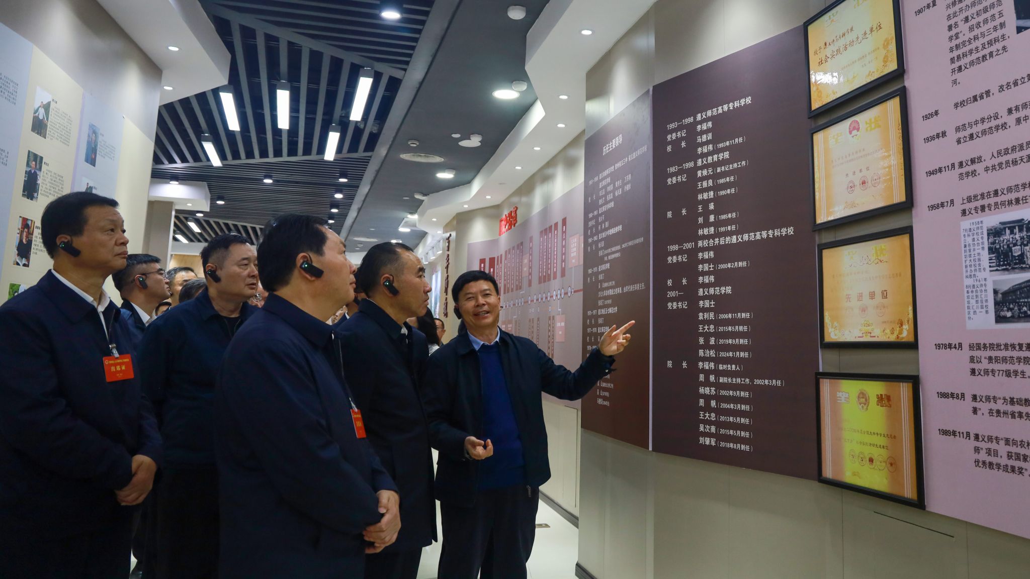 考察组一行先后走访了校史馆、“一带一路”黔货出海贵州遵义跨境电商人才培训基地,对学校办学理念、办学目标定位、侨务工作开展等情况进行了解。