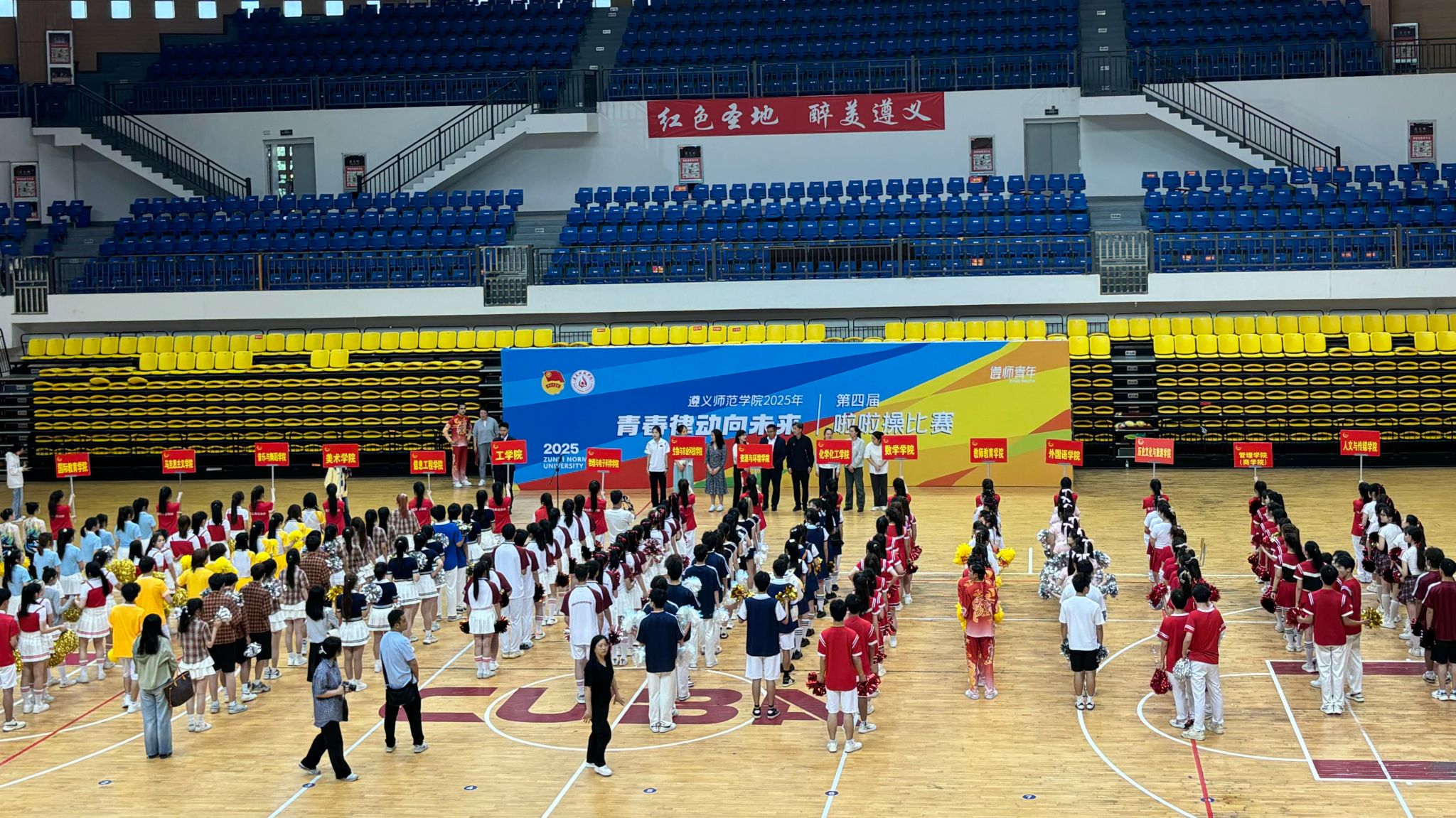 比赛中,来自16个学院的参赛队依次登场。动感的音乐、整齐的步伐、创新的编排,将力量与柔美、团队协作与个性表达完美融合,充分展现了遵义师院学子昂扬向上的精神风貌。比赛现场掌声雷动,观众席化作一片热情的海洋。